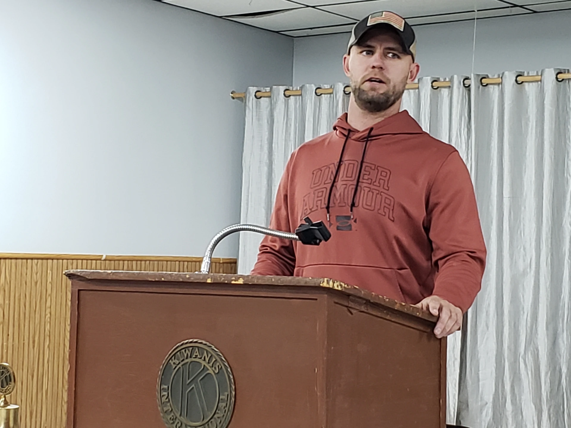 Officer Chaz Dees, a Taylorville native, was appointed as a police School Resource Officer midway thru the school year last year. He served on the police force as a patrolman the past 4 years. He told Kiwanis members it is a big honor for the community to trust him with the safety of Taylorville school students at the high school and Memorial Elementary School.