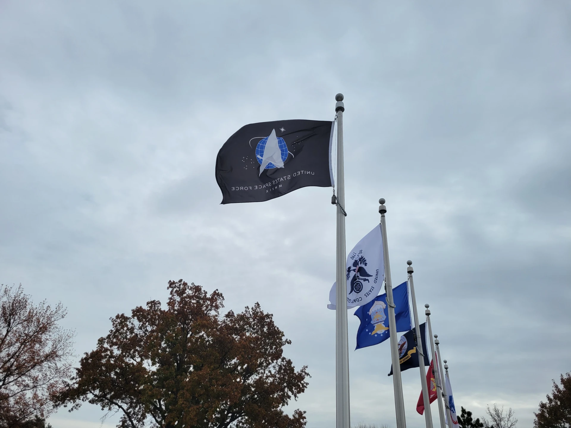 On a cold Veteran’s Day, several Taylorville residents gathered to recognize the many local veterans along with dedicating part of the Memorial Wall and raising the brand new Space Force flag at a dedication ceremony at the Lake Taylorville Veterans Point Memorial. Pastor Chad Zueck, of Calvary Baptist Church in Taylorville, spoke at the ceremony. A Navy Veteran, Zueck recognized that every single person there, regardless of job, had an important mission, even if they didn’t serve.