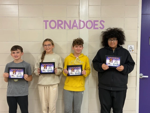 Students of the month are as follows: 5th Grade Meacham Wyzard, 6th Grade Dilynne Declerck, 7th Grade Linus Melton, 8th Grade Carl Holloway. Congratuliations!!!