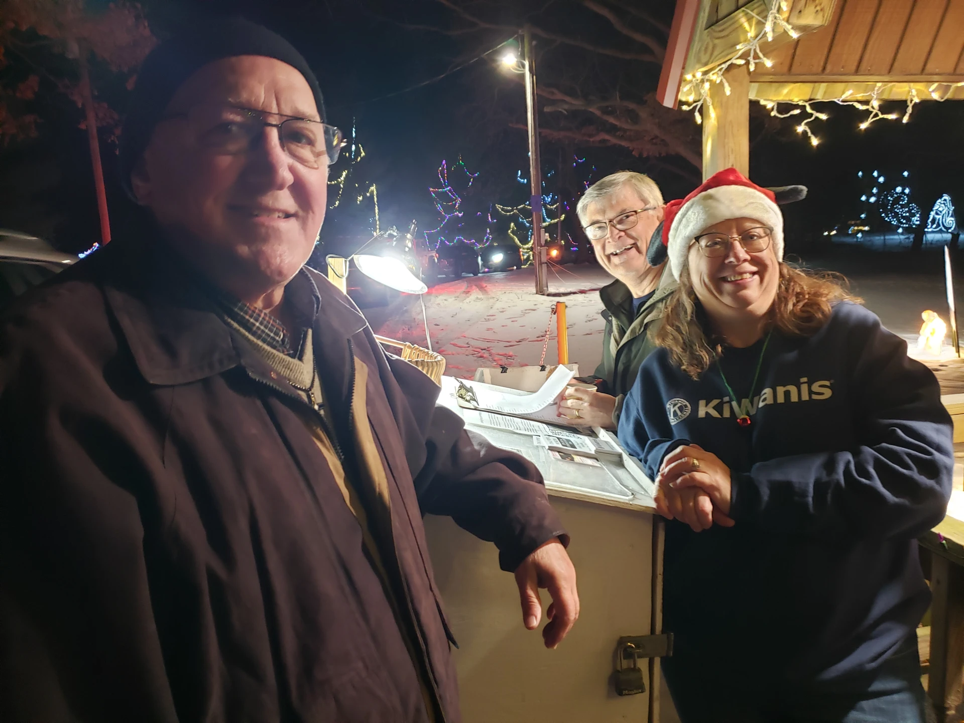 Several members of the Taylorville Kiwanis Club volunteered to take donations for the Taylorville Park District Tuesday night, as part of Manners Park’s annual “Christmas in the Park” light displays.