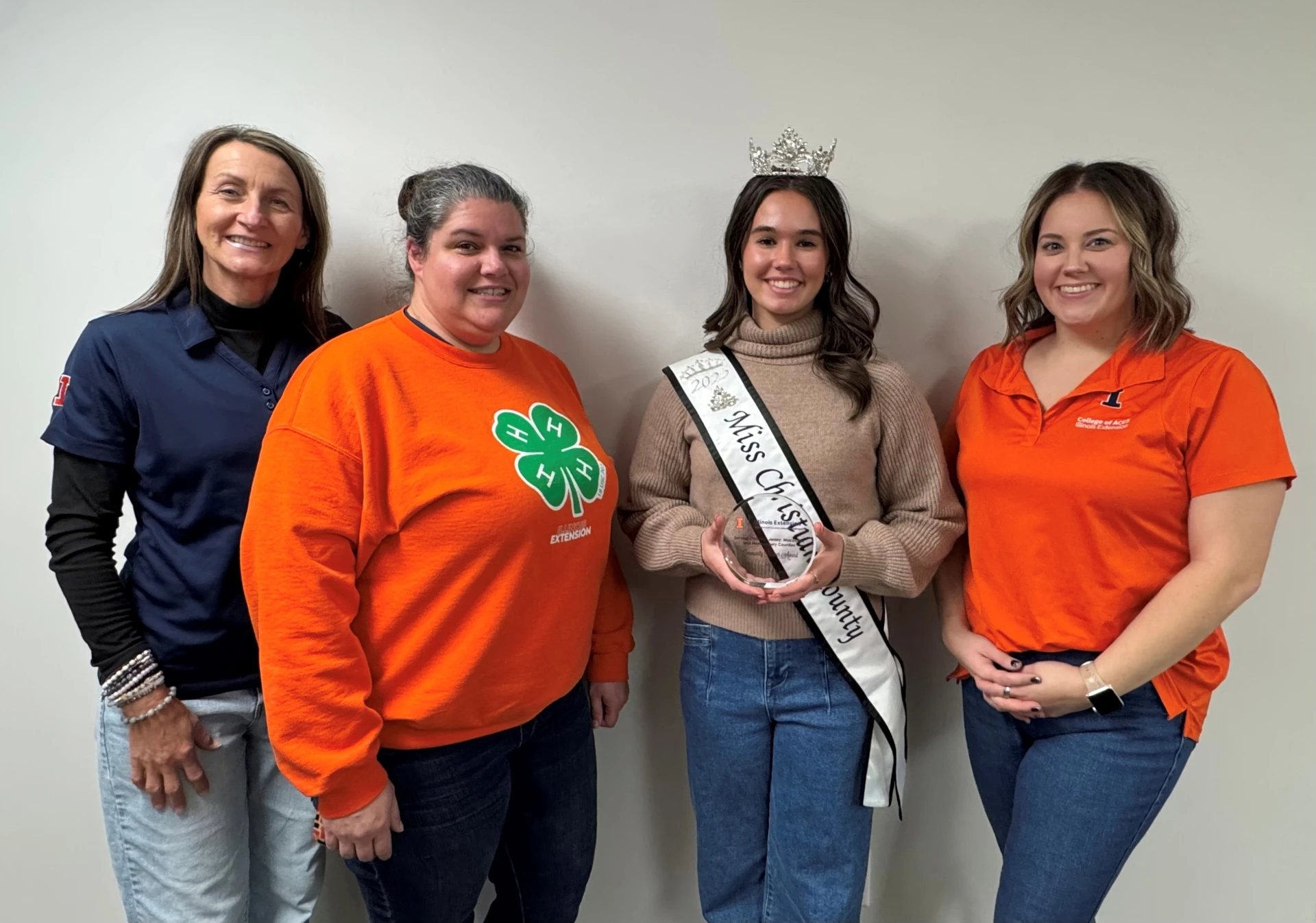 University of Illinois Extension serving Christian, Jersey, Macoupin, and Montgomery counties presented the award to 2025 Miss Christian County, Lydia Repscher on behalf of the Fair Board. Extension County Director Sara Marten says strong community partnerships are essential to Extension’s mission and impact across the region.