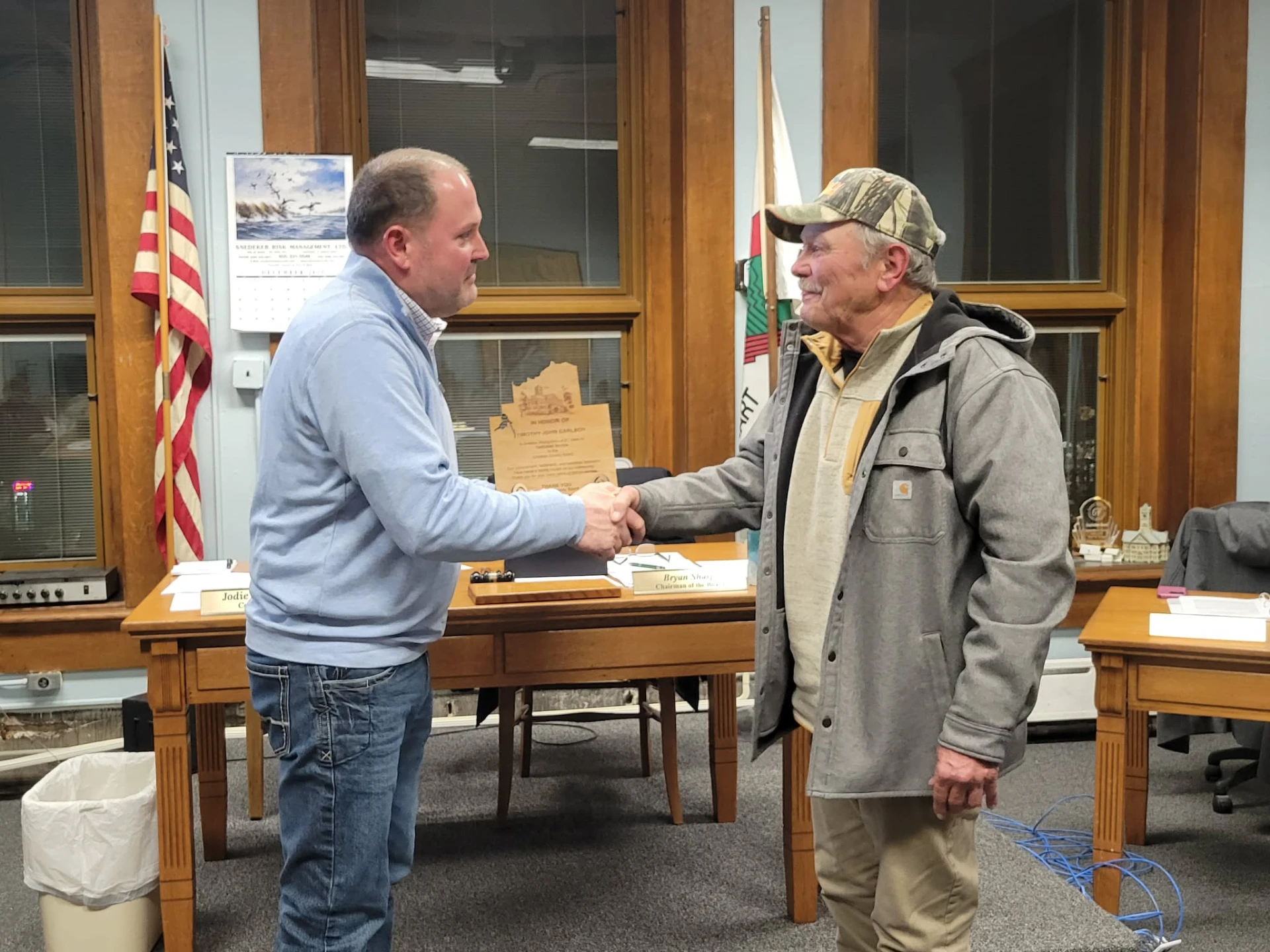 A small reception was held for Tim after the meeting. Tim thanked everyone for the support over the years and says he's looking forward to a little relaxing. He says he will miss adjourning meetings though. The next county board meeting is set for January 20th.