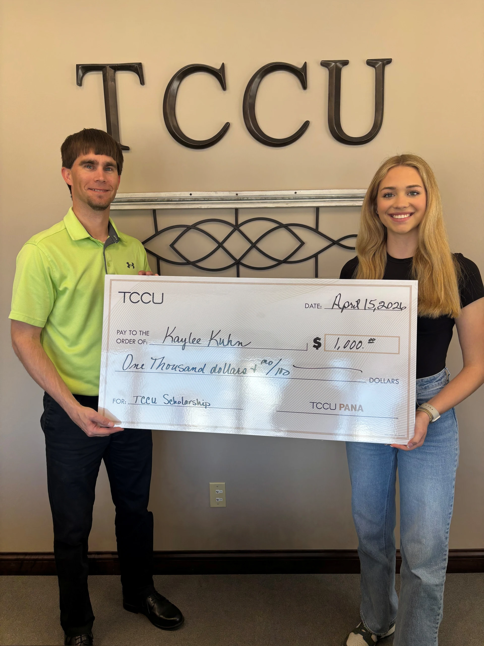 Mike Cothern, TCCU Pana loan officer (Left) and Kaylee Kuhnand (Right)