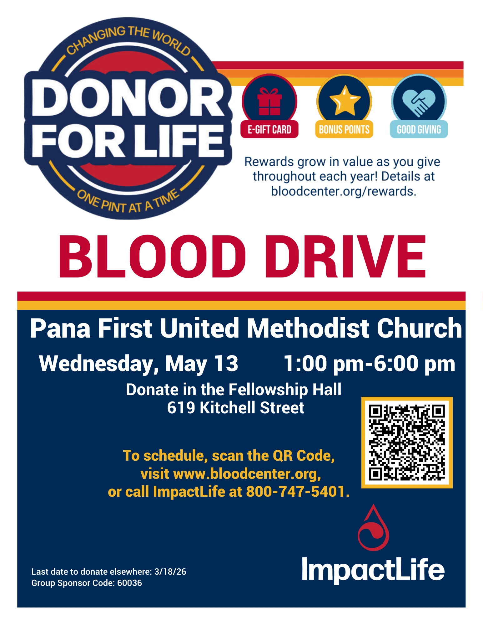 A chance to give back to those in need is coming up on May 13th and 14th with the ImpactLife Community Blood Drive. A blood drive will take place in Pana on the 13th and in Taylorville on the 14th.