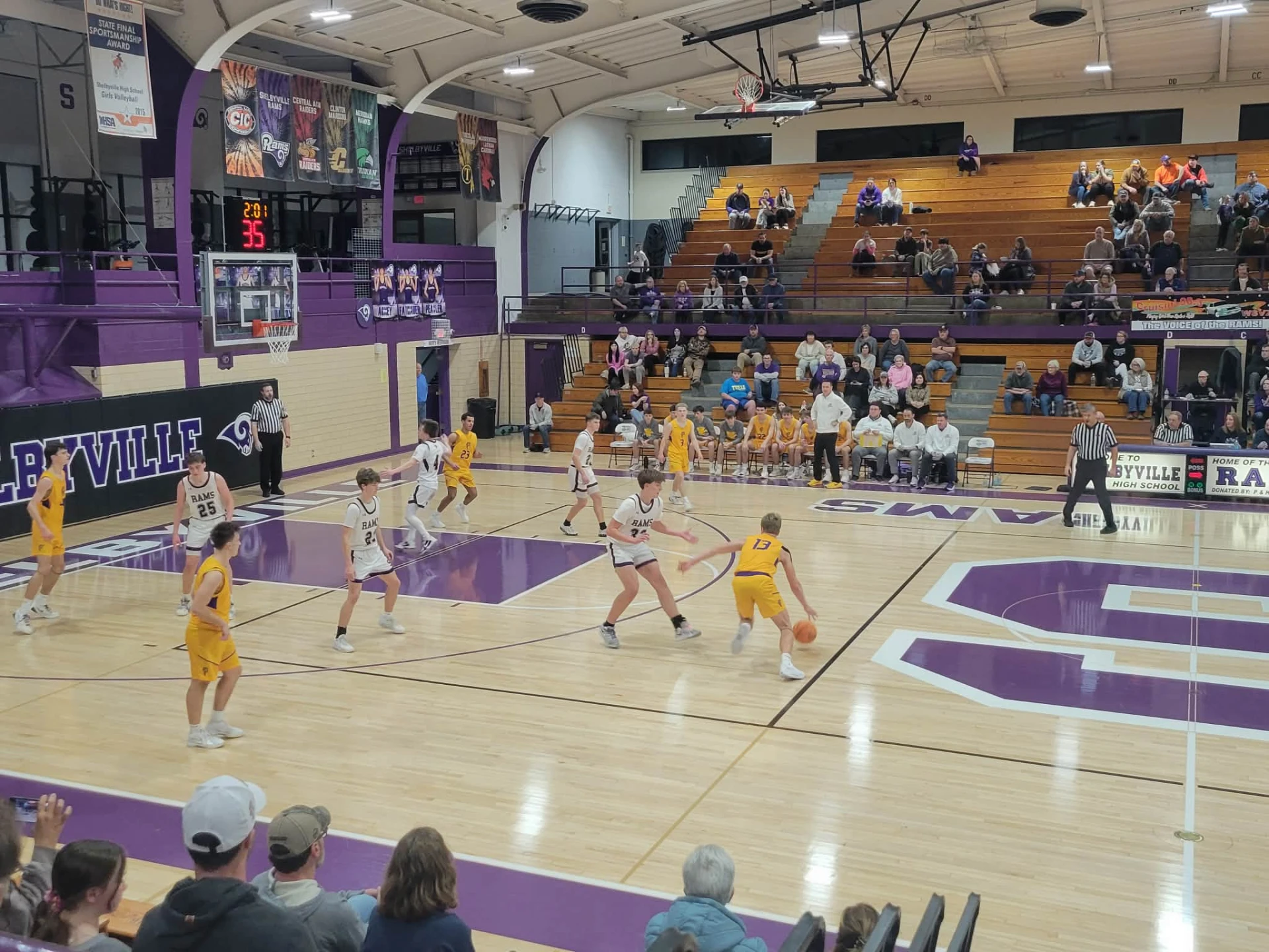 Maddyx Owens would add a field goal on a quick outlet play to give the Tornadoes a 42-38 lead with 3:04 left. The Irish would cut the defecit to two, but Brock Brown hit another runner and the Tornadoes lead was 44-40 with 92 seconds left. That's when Bergschneider would hit his three cutting the deficit to 1. Brown would get fouled but miss both his free throws with 32 seconds left and a one point lead. Going the other way Bergschneider would shoot another three but on the rebound attempt, Maddyx Owens would foul the Irish' Jack Phillips who would make one of his free throws sending the game into overtime all tied at 44.
