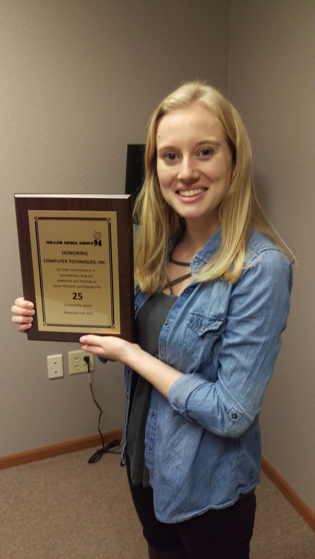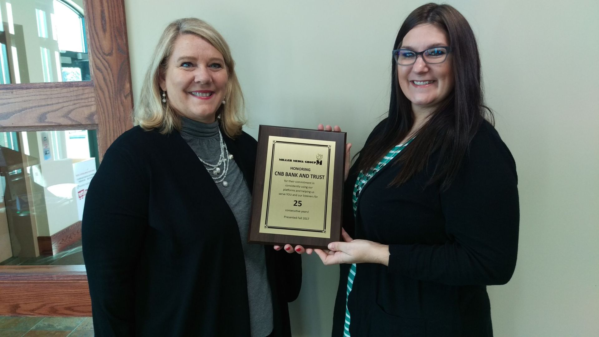 We're honoring those entities that have committed to consistently use our media platforms to help us serve advertisers and listeners in our listening area. Each entity received a plaque for their consistent use of Miller Media Group platforms in our 25 years in the area.